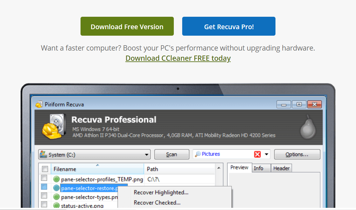 Aplikasi Recovery data terbaik pertama untuk Windows 10 ialah Recuva. Perisian ini boleh menjadi perisian percuma dari Piriform, pembangun aplikasi CCleaner yang merupakan salah satu aplikasi pembersih terbaik di Windows. Kita boleh menggunakan aplikasi Recovery ini secara percuma, saya sendiri menggunakan Recuva di PC saya.