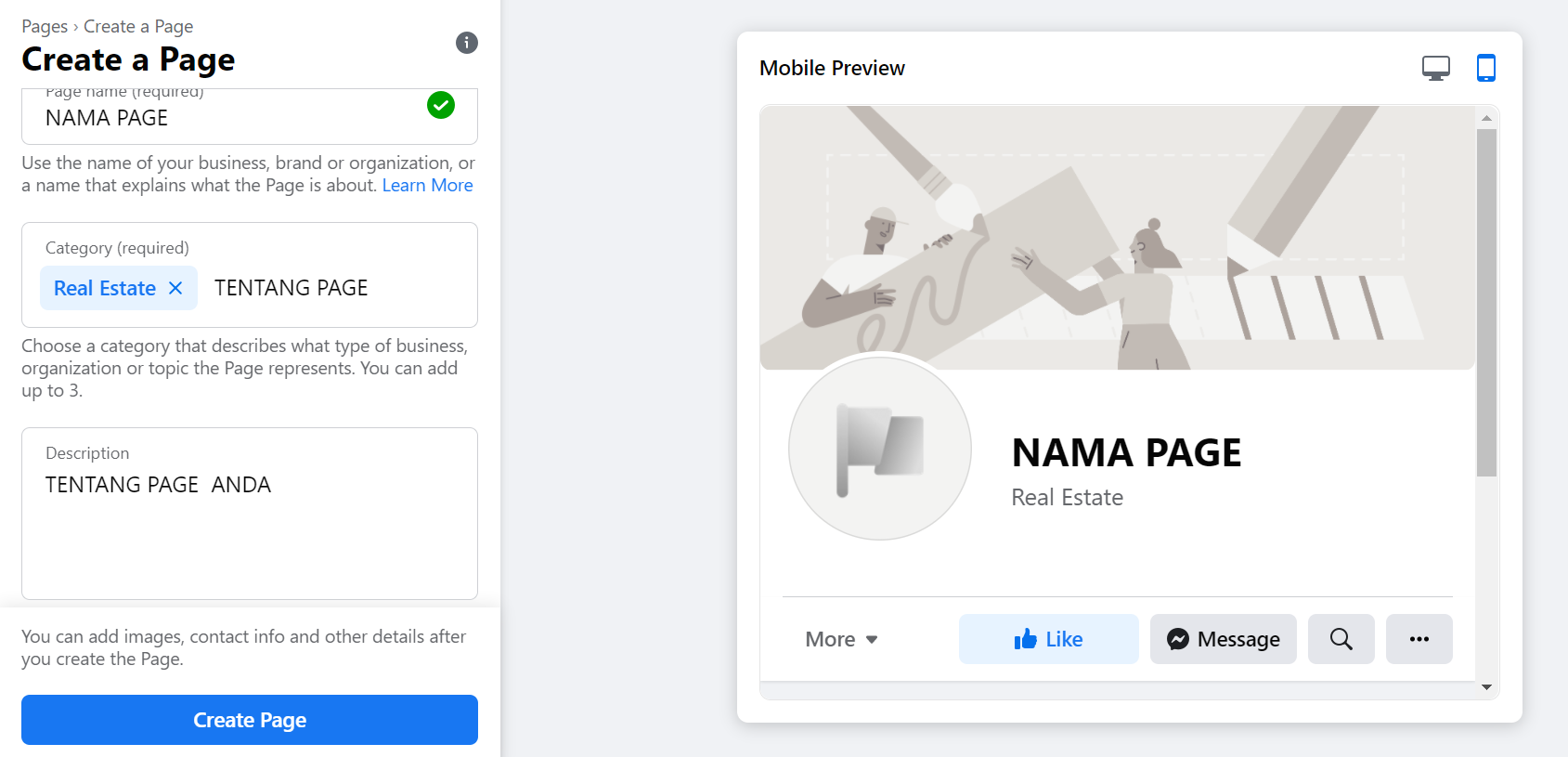 - Page Name - Isikan nama page sesuai bisnes anda ataupun sesuai content anda.