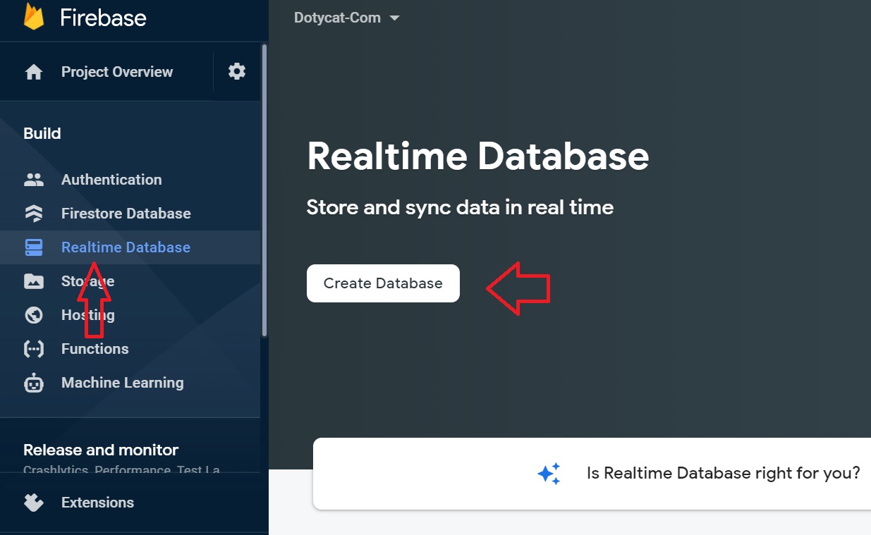 - Scroll kebawah pilih Realtime Database klik Buat database.