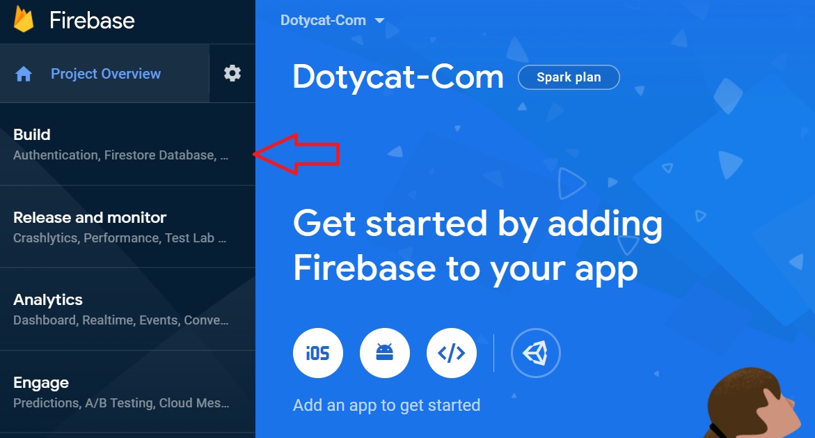 - Setelah berada di dashboard Firebase, klik Menu BULET.