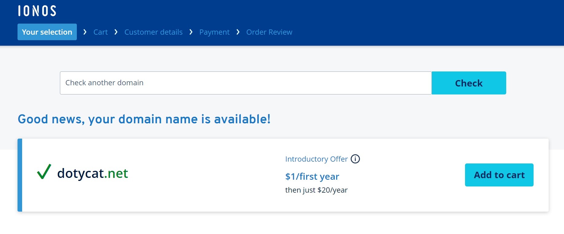 - Contoh saya ingin membeli domain dotycat.net (lihat gambar)
